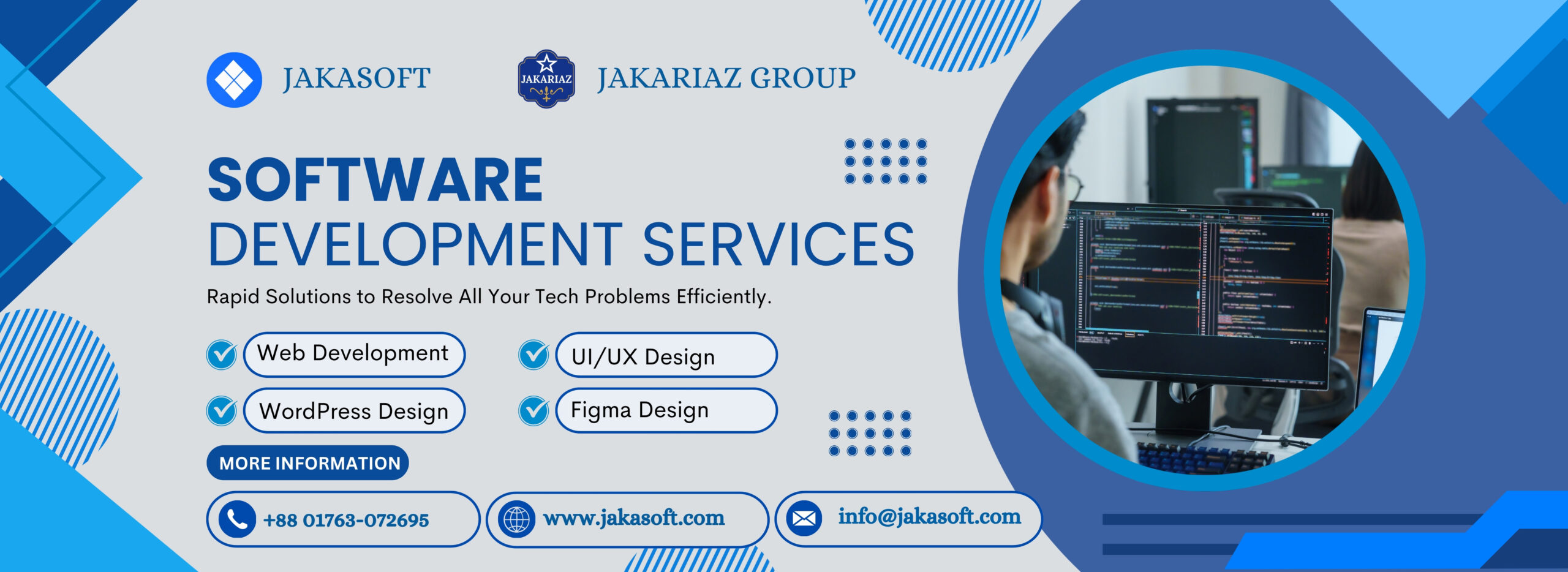 Whether you’re looking for a responsive website, an engaging UI/UX design, a WordPress solution, or Figma prototypes, JakaSoft is your trusted partner for complete software development services.